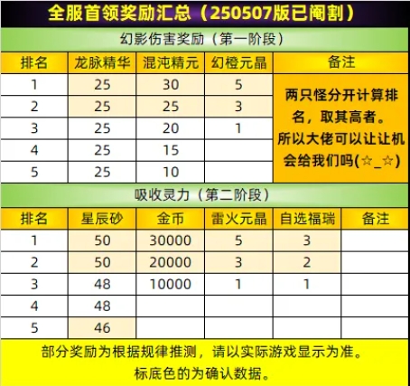 注:因缺乏樣本,所以部分獎勵可能有些許出處,但大差不差。