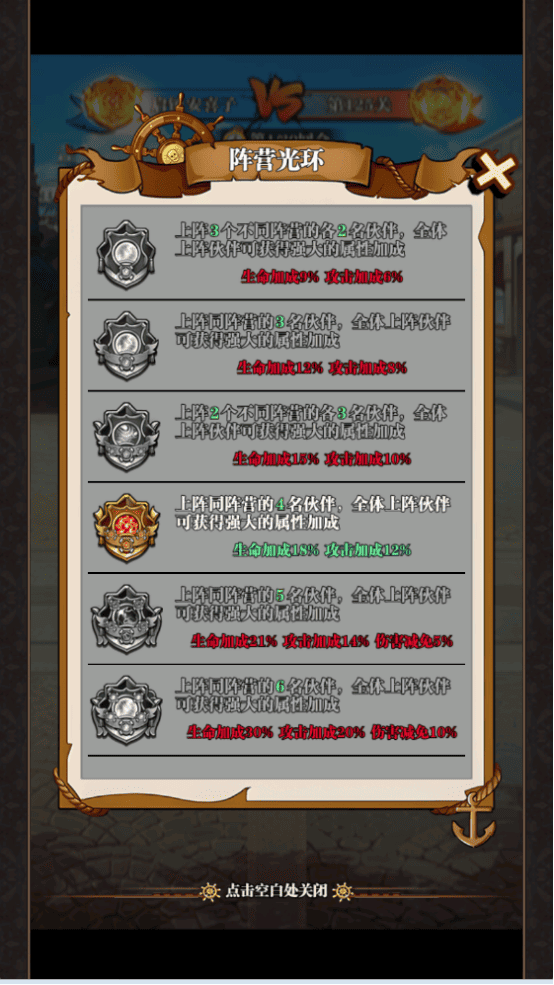 玩家需巧妙構(gòu)建戰(zhàn)斗陣容,依據(jù)不同戰(zhàn)局靈活調(diào)配角色,憑借策略與絕技征服對手,享受燒腦且激爽的戰(zhàn)斗快感。隊(duì)伍中可以編入6名角色,角色有4種陣營和4種定位。陣營分為世界政府、新星團(tuán)、大海賊、海軍和五皇;定位分為輔助、肉盾、輸出、控制。陣營之間沒有克制效果,會根據(jù)上陣中同陣營的英雄數(shù)量獲得傳說之力的加成。戰(zhàn)斗的攻擊順序是根據(jù)在布陣的站位1-6號進(jìn)行,雙方一號角色會優(yōu)先行動以此類推,可以根據(jù)你隊(duì)伍中6名角色的定位設(shè)置合理的排陣出手順序。