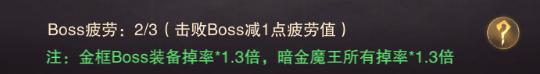 挑戰(zhàn)BOSS需要消耗BOSS疲勞,每天有3次的免費挑戰(zhàn)機會。隨著轉(zhuǎn)生等級的提高,可以挑戰(zhàn)的層數(shù)就越高,其中每層的黃金領(lǐng)主與暗金魔王裝備掉率是1.3倍,建議把次數(shù)都用于挑戰(zhàn)這兩個BOSS。